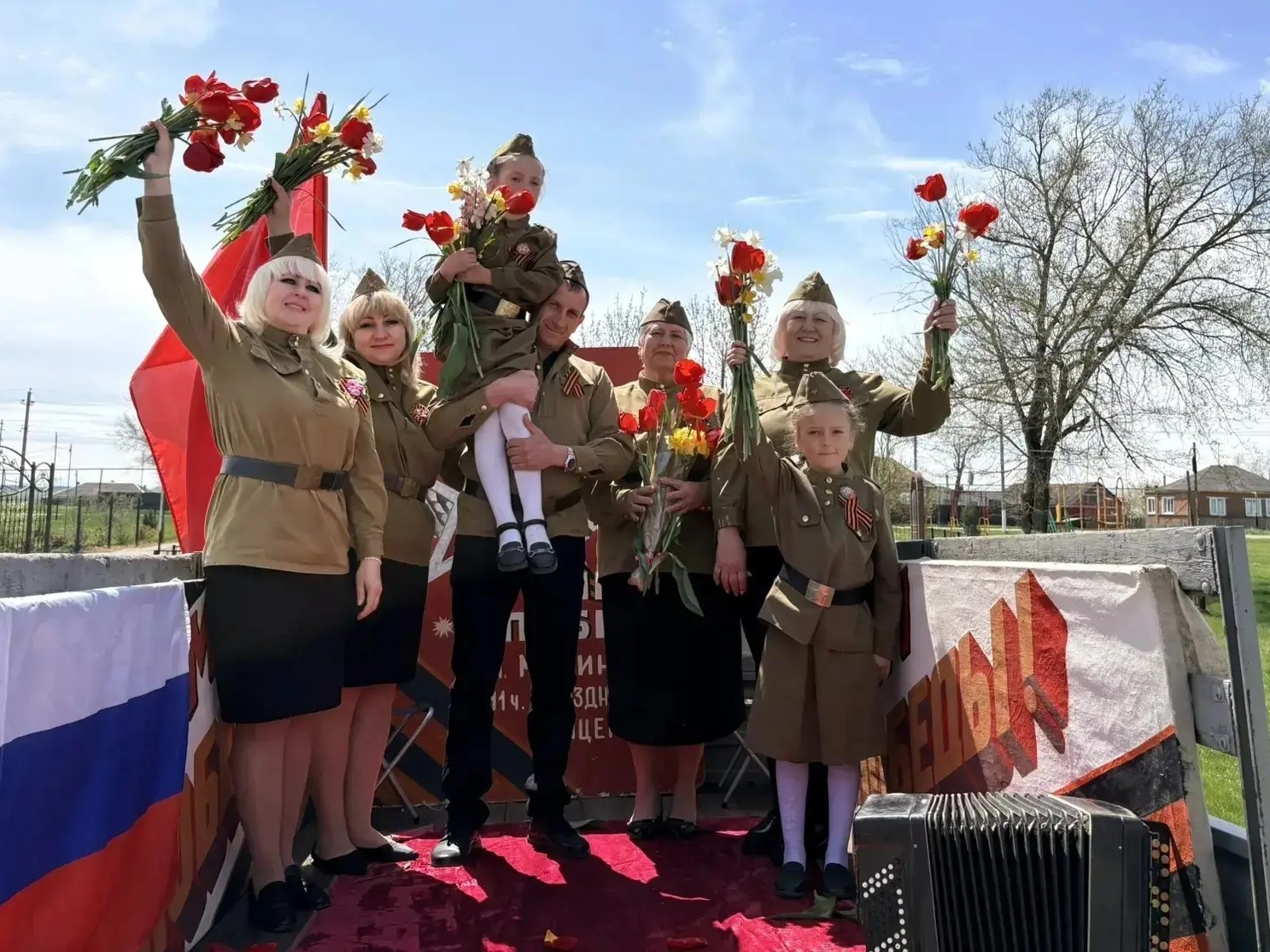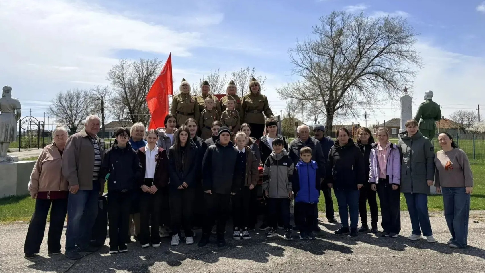 Янкульский СДК представил свою программу жителям села Дубовая Балка у памятника воинской славы села. Под чистым голубым небом на ветру развевалось алое знамя Победы, звучали патриотические песни и песни военных лет, поднимая настроение зрителям, укрепляя патриотический настрой и дух единства в преддверии Великого Дня Победы.