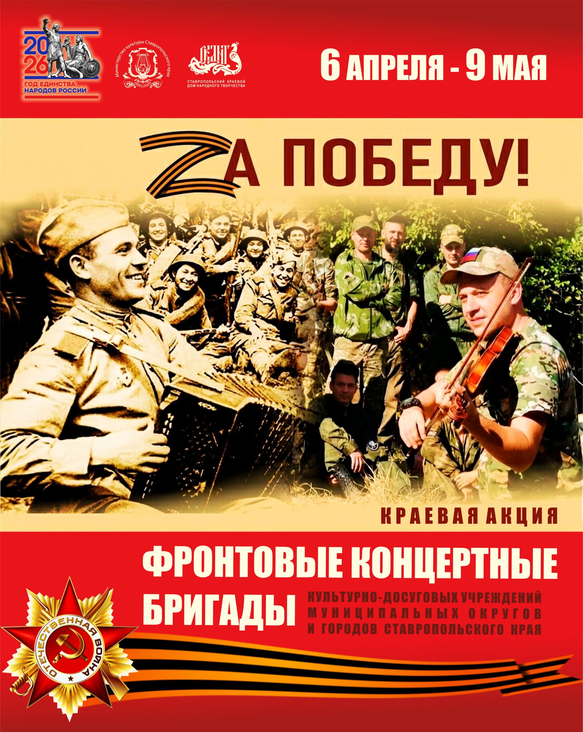 С 06 апреля участниками культурно-патриотической акции станут свыше 350 концертно-фронтовых бригад и более 6000 самодеятельных артистов культурно-досуговых учреждений Ставропольского края.