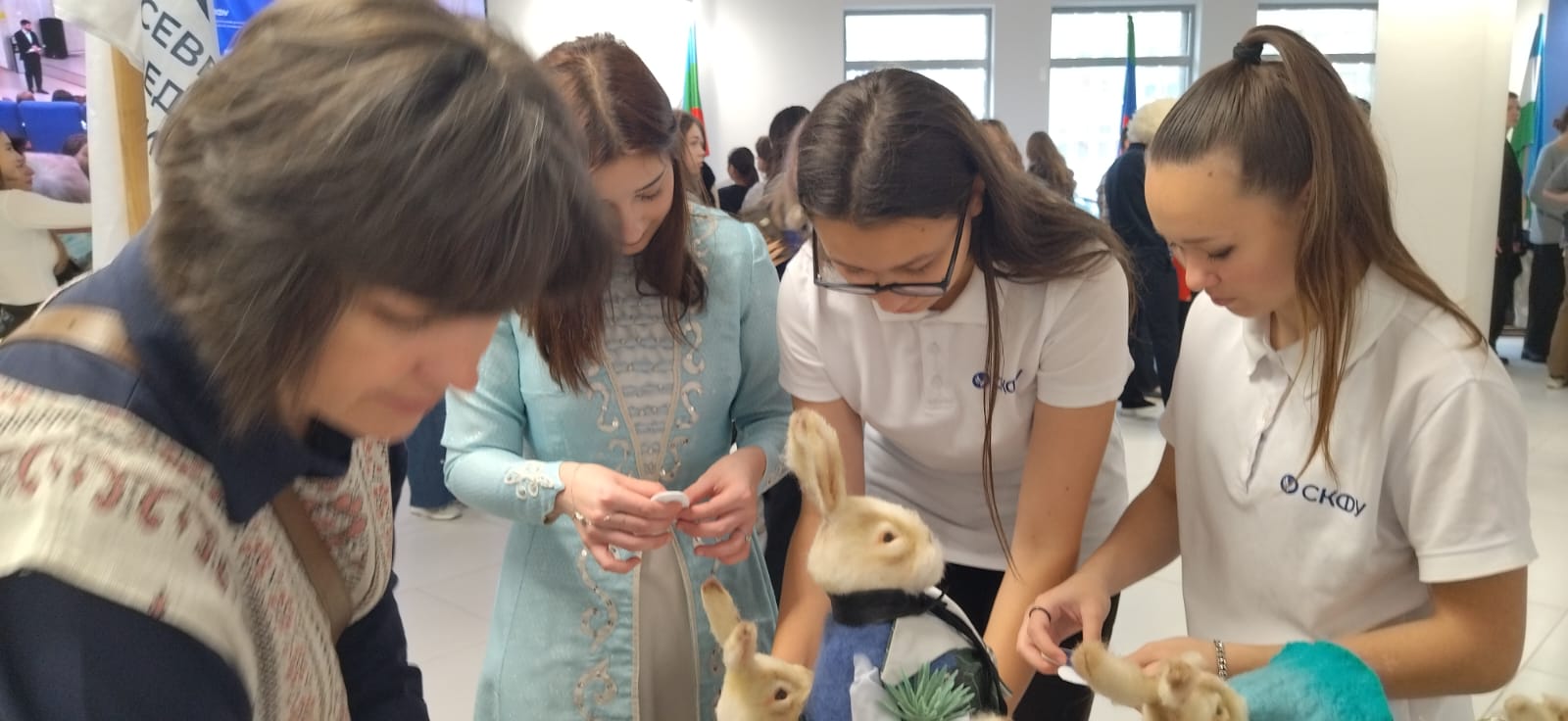Для гостей и студенческой молодежи мастера организовали фото зону, выставочную экспозицию – авторские куклы «Казачки», народные обереговые куклы, эксклюзивные работы из войлока, гончарные изделия. Провели мастер-классы по различным направлениям декоративно-прикладного искусства: Ольга Кожухова и Валентина Мозжелина показали приемы работы с текстилем и изготовили самый популярный ставропольский сувенир «Южный слоник», Ирина Москаленко предложила каждому участнику проявить мастерство, фантазию в изготовлении декоративного панно в технике мокрого валяния, Юлия Некрасова познакомила с изготовлением кувшинчика на гончарном круге, Наталья Илюшкина с участниками мастер-класса создала сувенир «Лошадка».