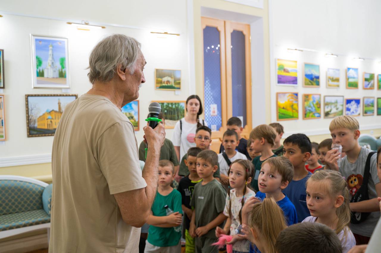 Сегодня в Ставропольском краевом Доме народного творчества для школьников летнего оздоровительного лагеря СОШ № 28 г. Ставрополя прошла экскурсия по выставке самодеятельного художника Игоря Петровича Антонова.