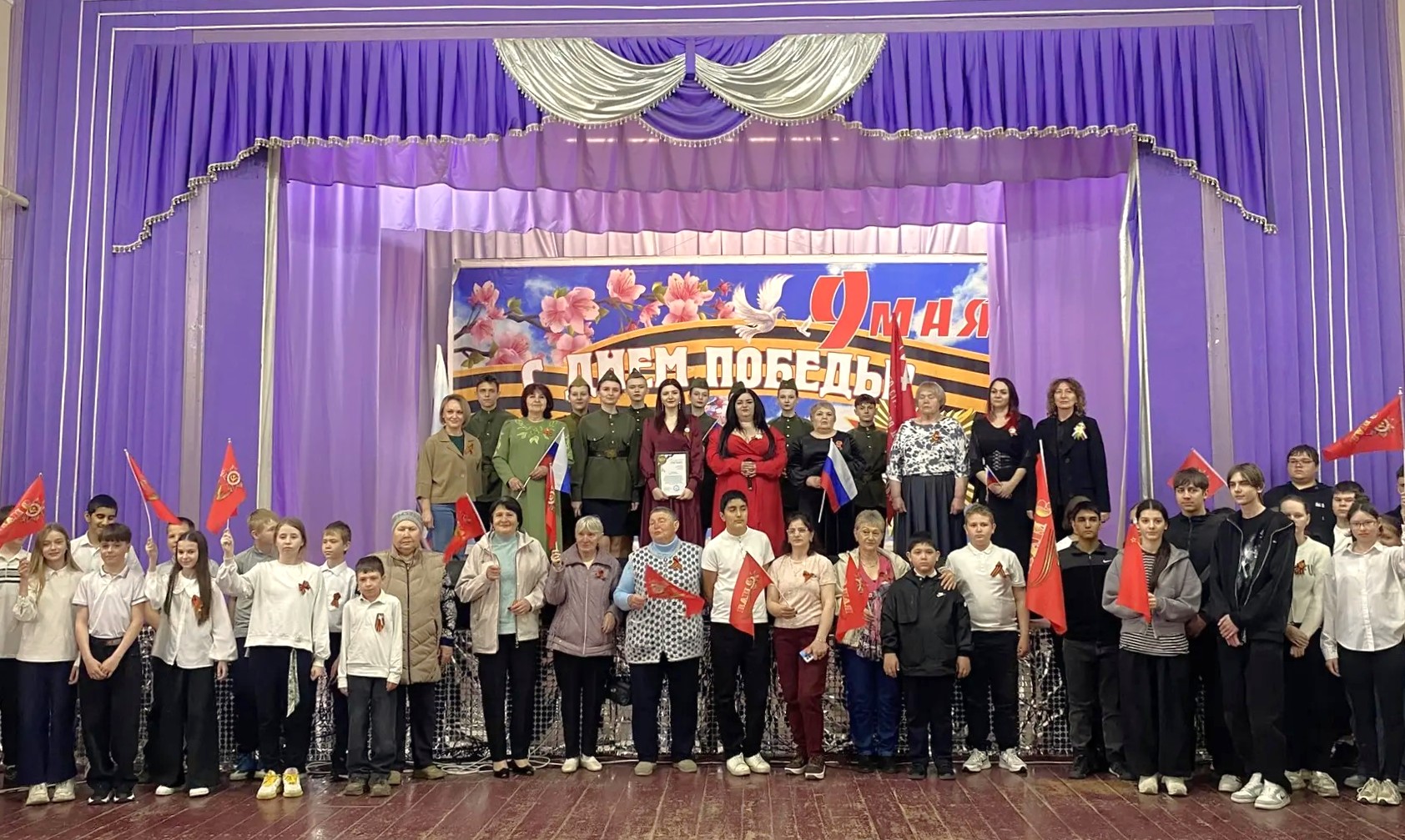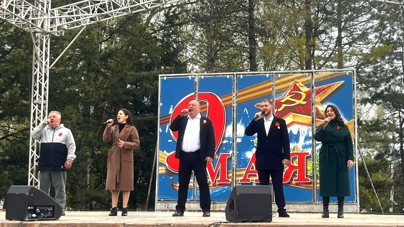 Концертная фронтовая бригада ДК посёлка Радуга Новоалександровского округа выступила с праздничной программой в Красногвардейском округе. Артистов тепло встречали жители с. Новомихайловского, представители старшего поколения и молодёжь, объединённые общей памятью и уважением к подвигам наших героев.