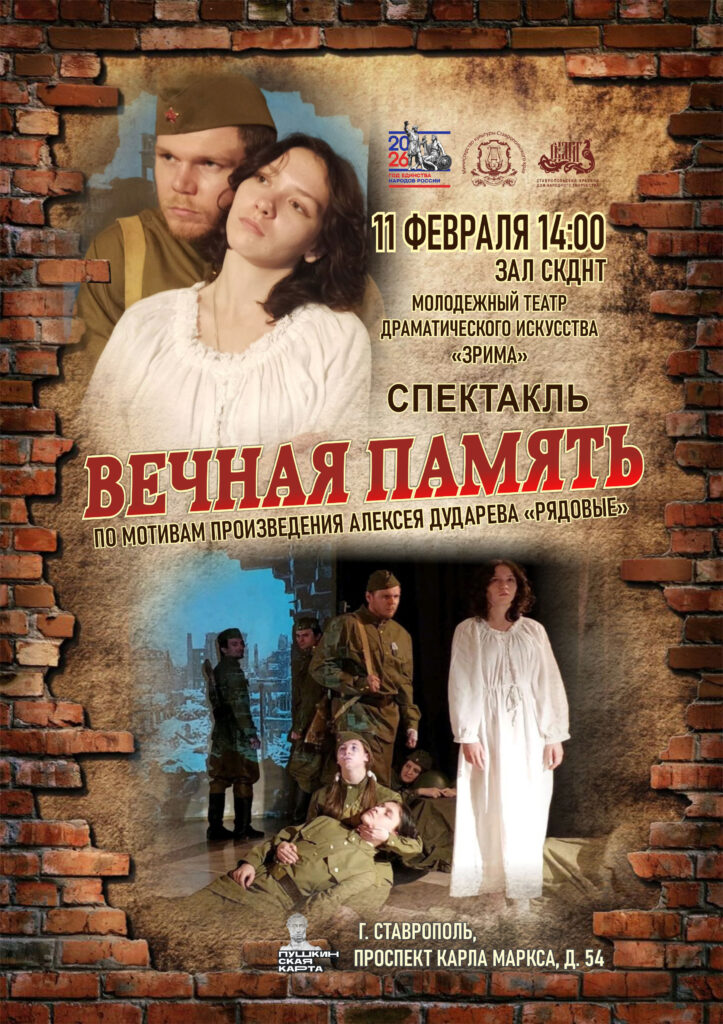Молодёжный театр драматического искусства «Зрима» города Ставрополя представит спектакль по мотивам произведения Алексея Дударева «Рядовые».
