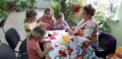 Далее для ребят состоялись увлекательные мастер-классы по рисунку и тестопластике, в ходе которых они изготовили и забрали с собой маленькие шедевры ручной работы. Мастер-класс по живописи провела Наталья Ягупова, преподаватель, член Союза художников и дизайнеров России, по тестопластике Альбина Запорожцева, по изготовлению «народной обереговой куклы» Лариса Дорош, мастера творческого объединения «Братина». В это же время творческий десант мастеров декоративно-прикладного творчества ТО в составе: Ирины Москаленко, Ирины Королевой, Марины Черниговской, Юлии Некрасовой провел мастер-класс по изготовлению поделок из войлока, глины, по ткачеству, вязанию и вышивке на базе МБУК «Социально-культурное объединение с. Сенгилеевского и поселка Приозерный для 50 учащихся Шпаковского муниципального округа Ставропольского края.
