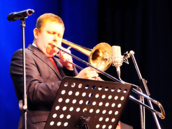 Завершающим аккордом концерта стало выступление Павла Овчинникова (г.Москва), известного джазового тромбониста, композитора, аранжировщика, дирижера, музыканта, играющего в лучшем российском джазовом коллективе, оркестре Игоря Бутмана. Примечательно, что известный музыкант Павел Овчинников родился в Ставропольском крае, в городе Невинномысске, начал свою творческую деятельность как тромбонист в оркестре Ставропольского Государственного цирка.