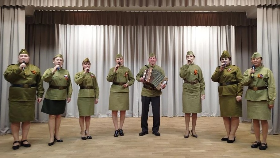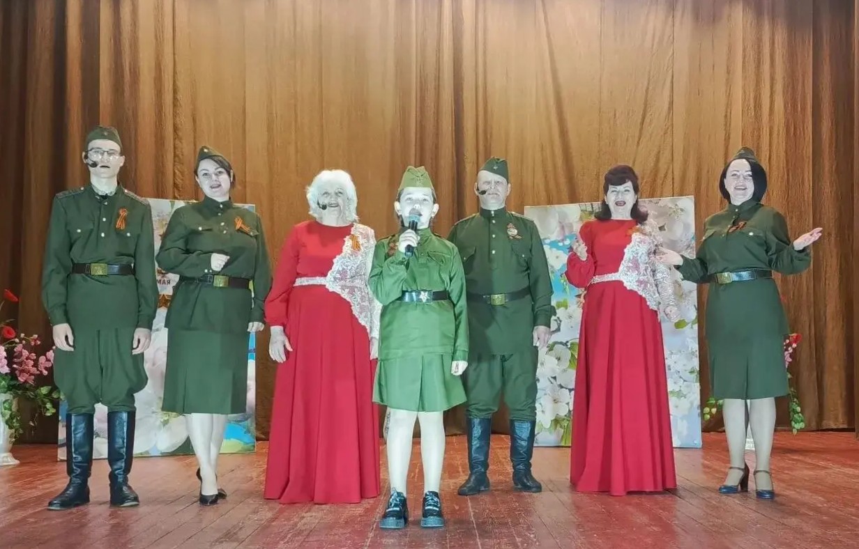 В селе Безопасном концертно-фронтовая бригада с. Родыки открыла программу задорной песней фронтовых бригад, напомнив зрителям о бесстрашных артистах военных лет, которые выступали даже в самых опасных местах, поднимая боевой дух солдат и согревая их сердца.